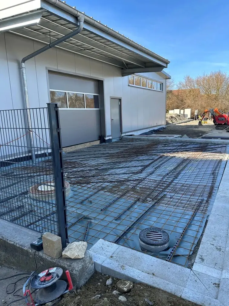 Asphaltierung des Innenhofs umfassende Renovierungsarbeiten am Gebäude; u. a. Umgestaltung altes Wohngebäude in ein modernes Büro